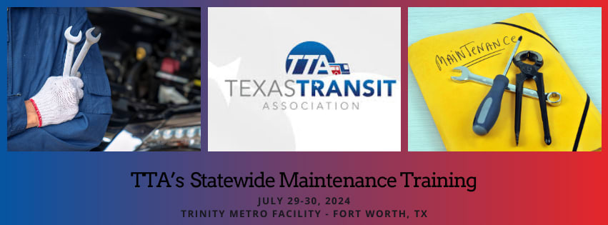 Join us for TTA's first Statewide Maintenance Training Session, designed specifically for Maintenance Technicians, Shop Foremen, and working Shop Managers. This training session aims to enhance your expertise and elevate your skills to the next level. Participants will engage with industry professionals, learn cutting-edge techniques, and stay updated with the latest advancements in maintenance practices. Whether you're looking to refine your current abilities or expand your knowledge base, this training will provide an invaluable professional growth and development opportunity. This is also an excellent networking opportunity with peers from around the state. Don't miss out on this chance to become a more proficient and effective leader in your field.